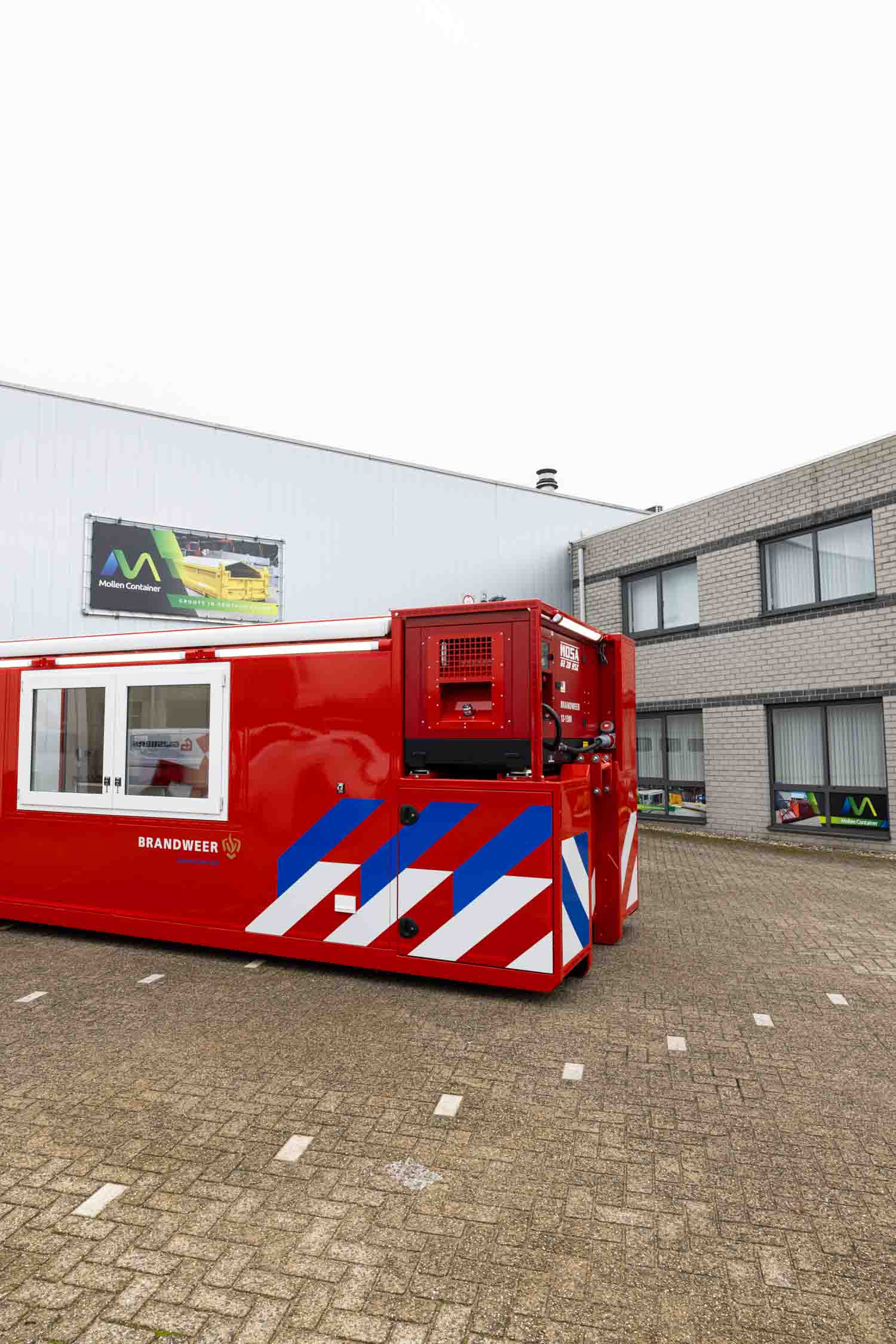 Een verzorgingsunit is een speciaal ontworpen container waarin hulpverleners, zoals brandweerlieden, de mogelijkheid hebben om pauzes te nemen en zichzelf weer op te laden. Deze units zijn onmisbaar tijdens grootschalige en langdurige inzetten waarbij veel personeel langere tijd ter plaatse moet blijven. Met de juiste voorzieningen dragen deze units bij aan de alertheid en het energieniveau van de teams. Mollen Container BV heeft, in overleg met de klant, zowel het 3D-ontwerp als de volledige realisatie en oplevering verzorgd.