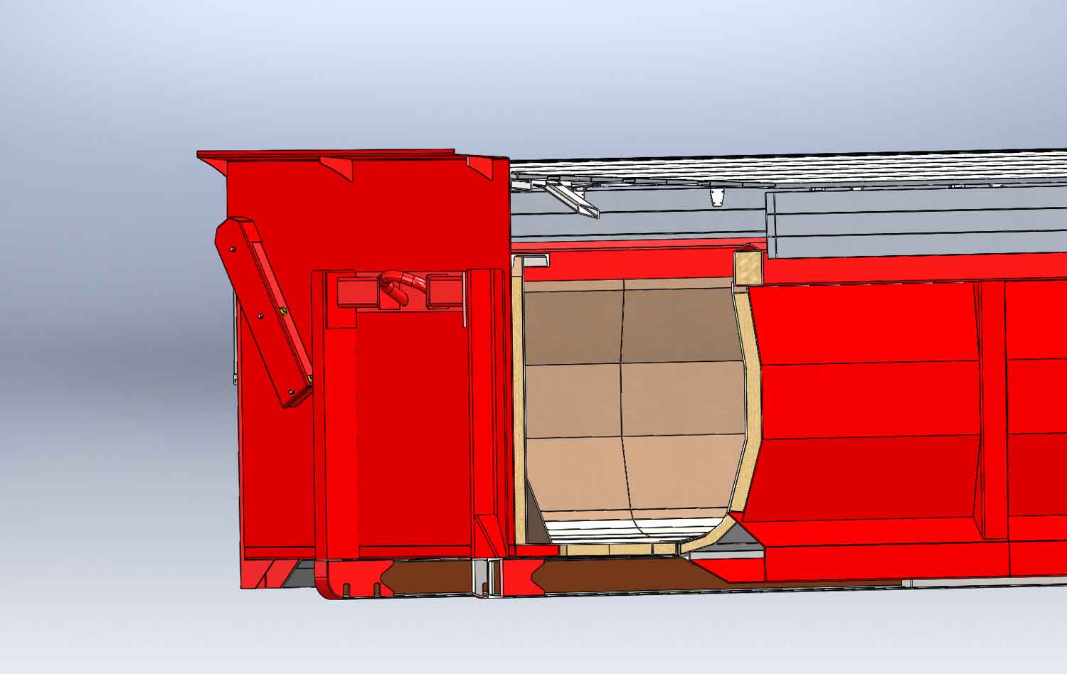 - Hydraulisch bediende aluminium afdekkappen. Specifieke uitvoering is afhankelijk van de inwendige hoogte van de container en of het gebruik van een hydraulisch bediend zijbord.